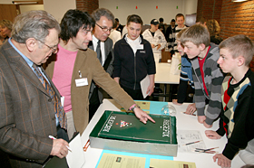 Jeweils gute fünf Minuten Zeit hatten die 28 Schülerfirmen bei der Wettbewerbspräsentation zum NEBSTAR 2008 am 15.04.2008, die Juroren zu überzeugen, dass ihre Produktidee, ihre fachliche Ausführung sowie ihre teamorientierte Präsentation den Titel „Schülerfirma des Jahres“ verdient. Und bei den durchweg kreativen und überzeugenden Leistungen keine leichte Aufgabe eine Wertung vorzunehmen. Zumal sich alle fast 250 teilnehmenden Schülerinnen und Schüler mit allergrößten Elan dem Wettbewerb stellten und alle die Ehrung verdient hätten, so die respektvollen Bekundungen der Laudatoren. Das Ergebnis: